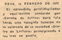 El 15 de febrero de 1897, actuaba en Reus, Tarragona, España, según consta en el "Diario Español" de dicha fecha.