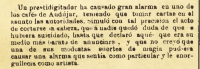 «Un prestidigitador ha causado gran alarma en uno de los cafés de Andújar, teniendo que tomar cartas en el asunto las autoridades, simuló con tal precisión el acto de cortarse la cabeza, que a nadie quedó duda de que se hubiera suicidado, hasta que declaró aquél que era su medio más barato de anunciarse, y que no creyó que una de sus modestas suertes de magia pudiera causar una alarma que sentía como particular y le enorgullecía como artista.»