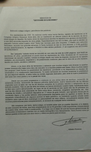 Con motivo de la segunda edición, Alfredo Florensa escribió la siguiente carta que se envió a muchos magos: