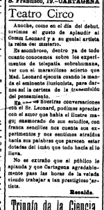 Leonard y la Reina del Misterio, de este modo se presentaba una pareja de ilusionista transmisores del pensamiento, en Cartagena, Murcia, España, en 1921. Según consta en el diario "La Tierra", y que dice: